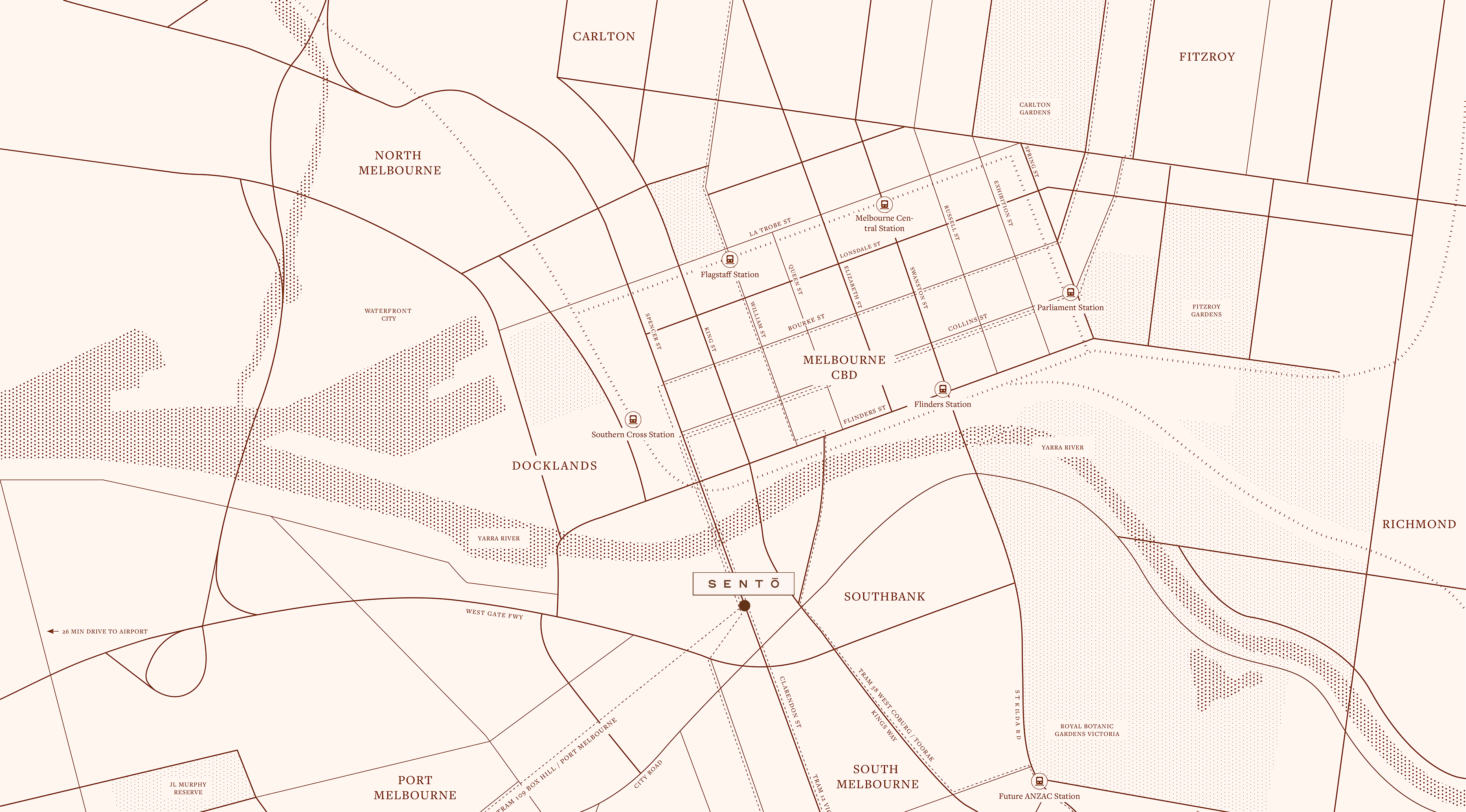 At 56 Clarendon Street, Sento stands at the convergence of Southbank, the CBD and the leafy suburb of South Melbourne — offering breathtaking views, as well as easy access to Crown Casino, iconic arts and entertainment destinations, dining venues, transport hubs and the riverside promenade.